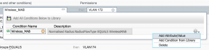 - Click the “+” in the attribute column that contains Wireless MAB, and add a new condition